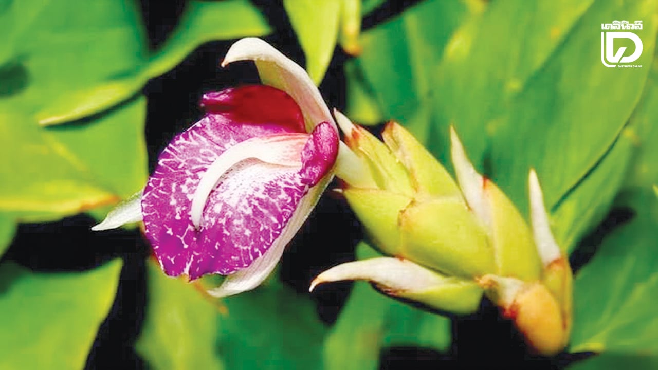 เรื่องน่ารู้ : ไอยริศ ดอกออกเป็นช่อ สวยแสดงดงามนั้น ดอกจะออกเป็นช่อที่ปลายยอด โดยก้านช่อดอกยาว 1-2 ซม. ใบประดับสีเขียวอ่อน มีขอบสีม่วงแดงสวยงาม กลีบเลี้ยงมี 3 กลีบ โคนเชื่อมกันเป็นหลอด ปลายแยกเป็น 3 แฉก กลีบดอกสีขาวบริสุทธิ์ ส่วนเกสรเพศผู้ที่เป็นหมันมี 5 อัน สีม่วงเข้มประดับลายขาว ลักษณะคล้ายกลีบดอก โดย 2 อันแยกเดี่ยว และอีก 3 อันเชื่อมติดกันเป็นกลีบปากตรงกลาง ยาวราว 2 ซม. ทำให้ดอกดูน่ารักและซับซ้อน